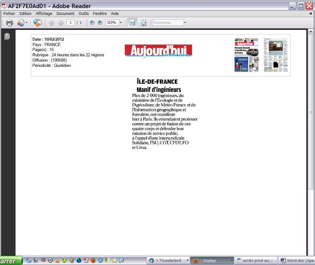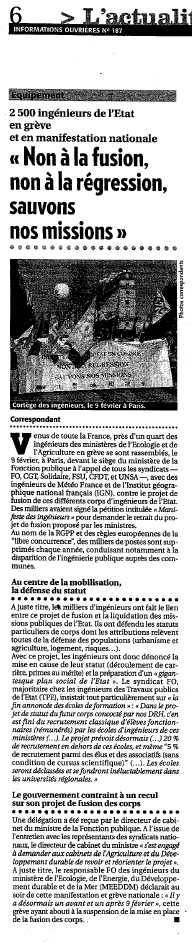 Carrières > Statut corps des ITPE > Projet de fusion des corps d'ingénieurs 2011/2012 > La Manif : tout le monde en parle…