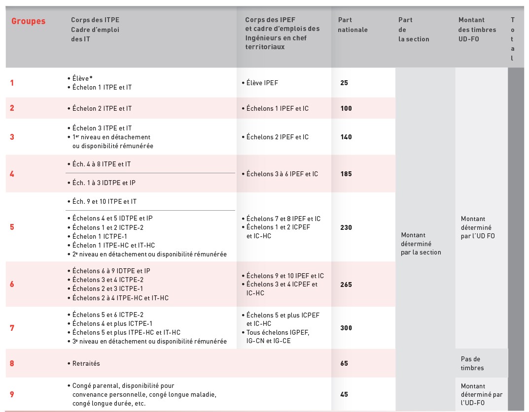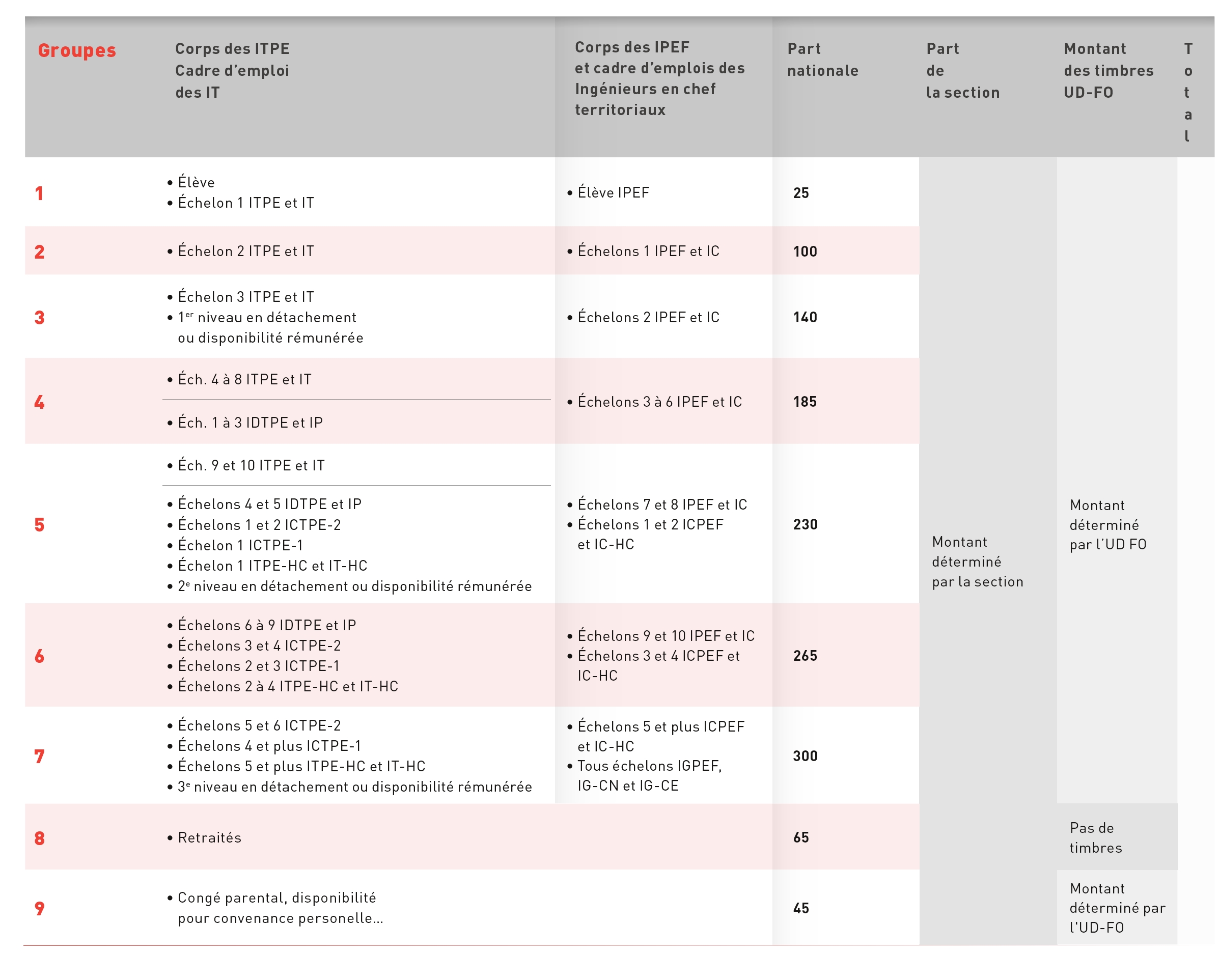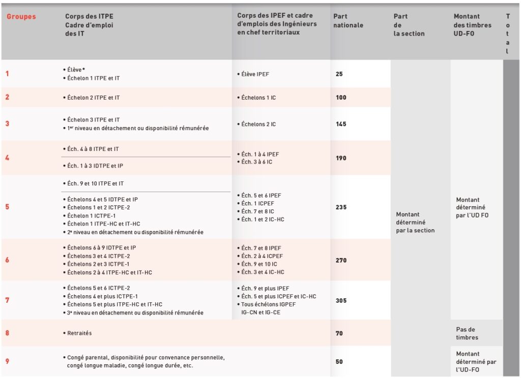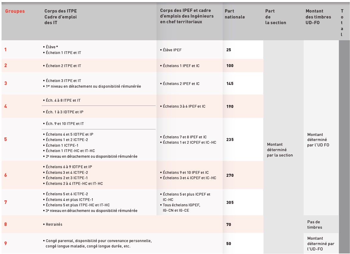 Le montant de la cotisation syndicale comprend la part nationale, à laquelle il faut ajouter la part déterminée par la section locale et la cotisation à l’Union Départementale FO.
