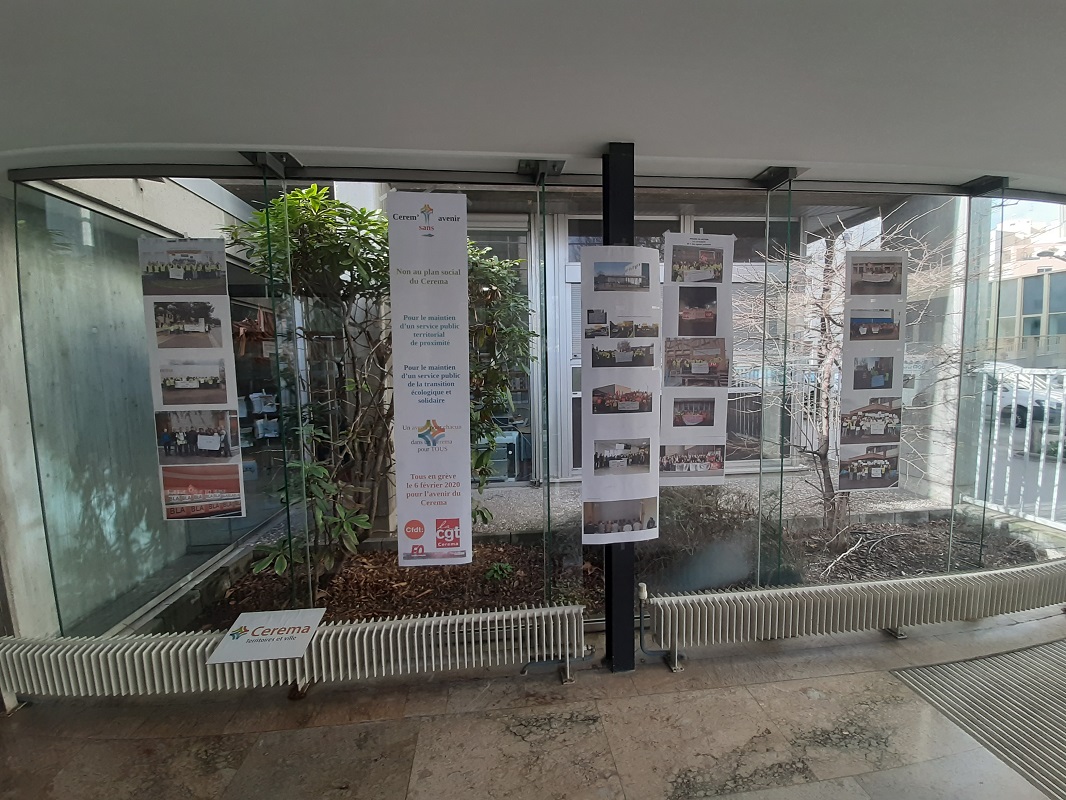 Le 6 février 2019, les agents du Cerema se sont mobilisés dans les différents sites de l’établissement pour montrer leur profond désaccord avec le projet Cerem’SansAvenir porté par la direction générale, dans une optique financière exclusive et dont les agents sont la variable d’ajustement !