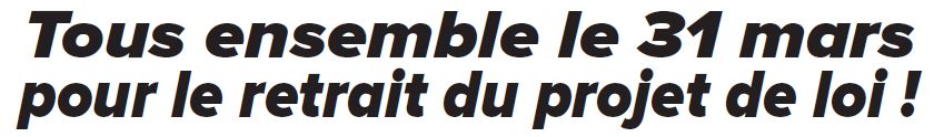 Qui sommes-nous? > Animation et action syndicales > Tous unis dans l'action ! > Grève et mobilisation du 31 mars: le retrait de la loi « Travail » concerne aussi les fonctionnaires!