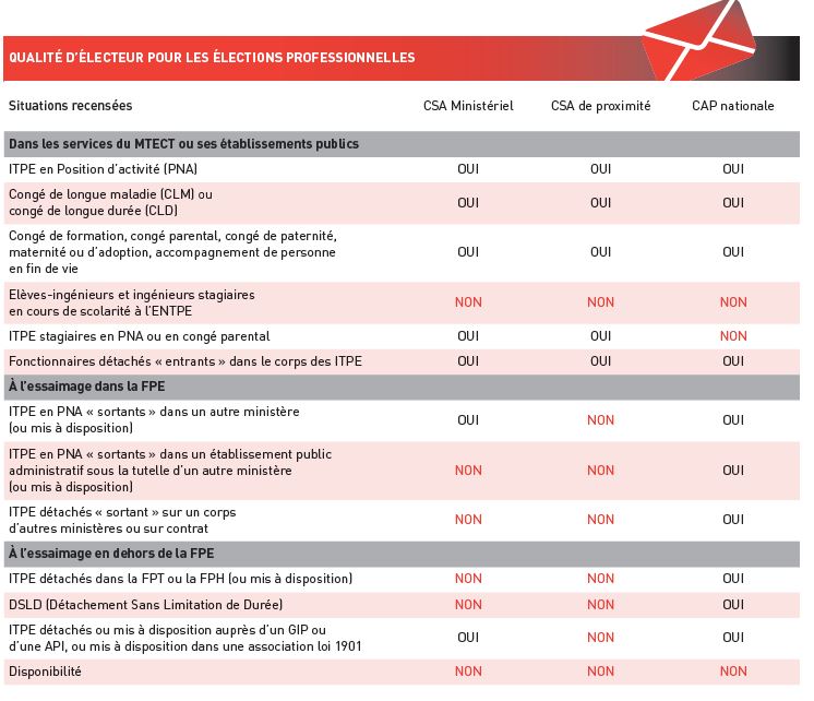 • Pour voter à la CAP, au CSA Ministériel et aux CSA locaux des services du MTECT (DREAL, Administration centrale, CETU, …) :