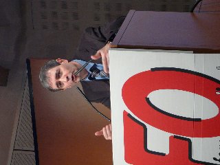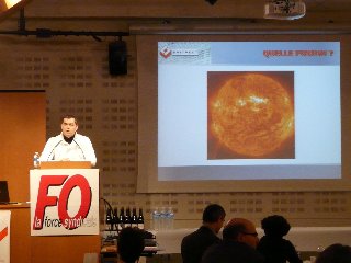 _ Gilles Gauthier, du SNITM-FO, présente la position des ingénieurs des travaux météorologiques.